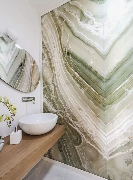 Marble is a slightly translucent material that allows light to penetrate the surface and illuminate the swirling veins of color within it. Unlike harder stones like quartz or granite, marble is easy to polish so you can create a high shine finish that lights up a room.