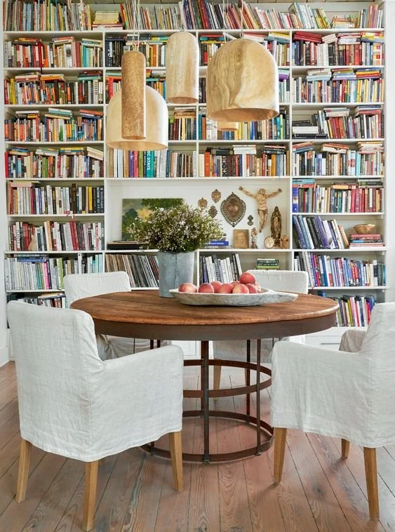 Make use of a big blank wall with some floor-to-ceiling shelving, doubling up on form and function. If you have the available depth to create it, a built-in library of artfully arranged books, plants, and sculptures will add a real touch of class to your home.