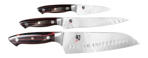 Santoku – a multipurpose utility knife with a slightly shorter blade than a chef’s knife, suitable for vegetables, fish, and boneless meat.