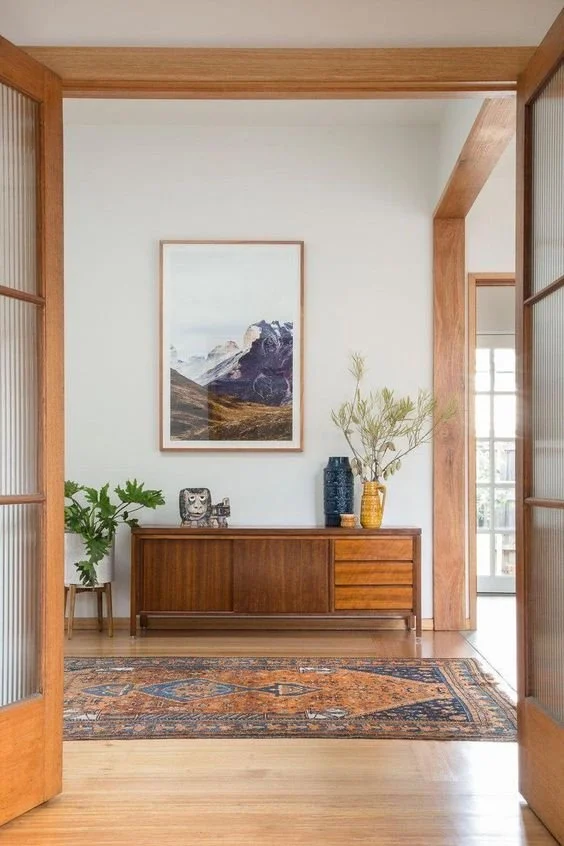 Although you may not be able to fit out your entire living room with genuine midcentury modern pieces, a vintage teak sideboard is a staple piece that will really amplify the midcentury look. Use it to store records, books, or a bar for a real midcentury feeling. You can mix and match genuine pieces with more contemporary ones to keep the room fresh and functional for your life today.