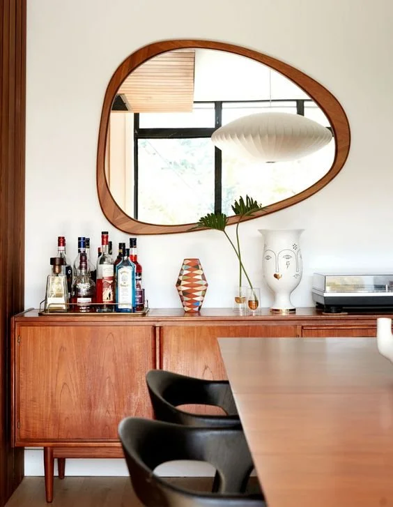 Add some decorative accents to tie the room together. An asymmetrical mirror, a bar cart, or some abstract art pieces can add the perfect finishing touches (just make sure to avoid adding too much clutter). Finally, remember that not everything in the room has to be 100% midcentury, you can create a nice mix of vintage and contemporary pieces to create something that works for you!