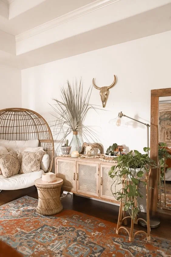 Natural fibers like sisal, seagrass, jute, and raffia can be used in a variety of soft furnishings to accent your home. Woven rugs, hammocks, baskets, pots, planters, and more can be brought together in boho, Mediterranean, and beachy styles.