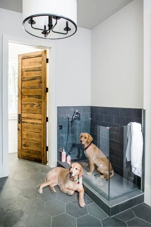 If your dog loves to splash in muddy puddles and make a mess, you’ll know as well as we do how important a good mudroom is for post-walk bathtime. A half-height shower is perfect for your mudroom, offering a secluded area to get those paws clean before they ruin your floors!