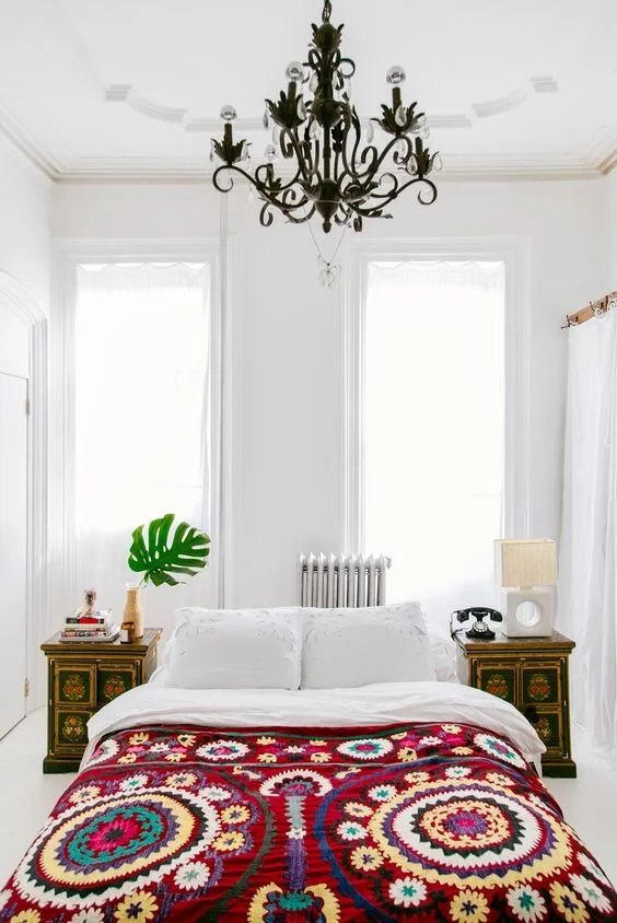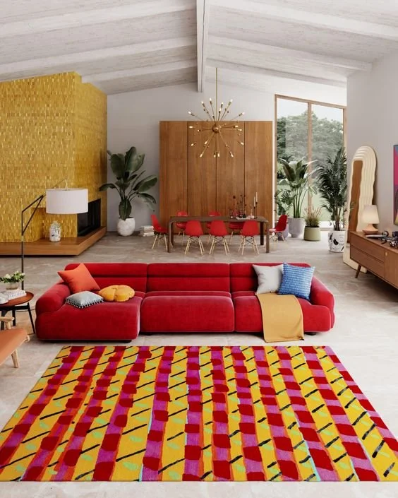 If you’d rather not go all in, you can use a single statement pattern piece to accent an otherwise more simple and sleek design. A bright statement rug or a bold tapestry can create a focal point worth talking about.