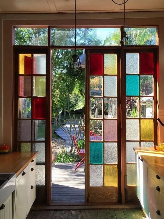 It’s not just for churches, stained glass can be a colorful addition to your home too. Stained glass doors or window panels can add a pop of pattern and color, while filtering natural light into beautiful patterns that shimmer and change as the sun moves throughout the day.